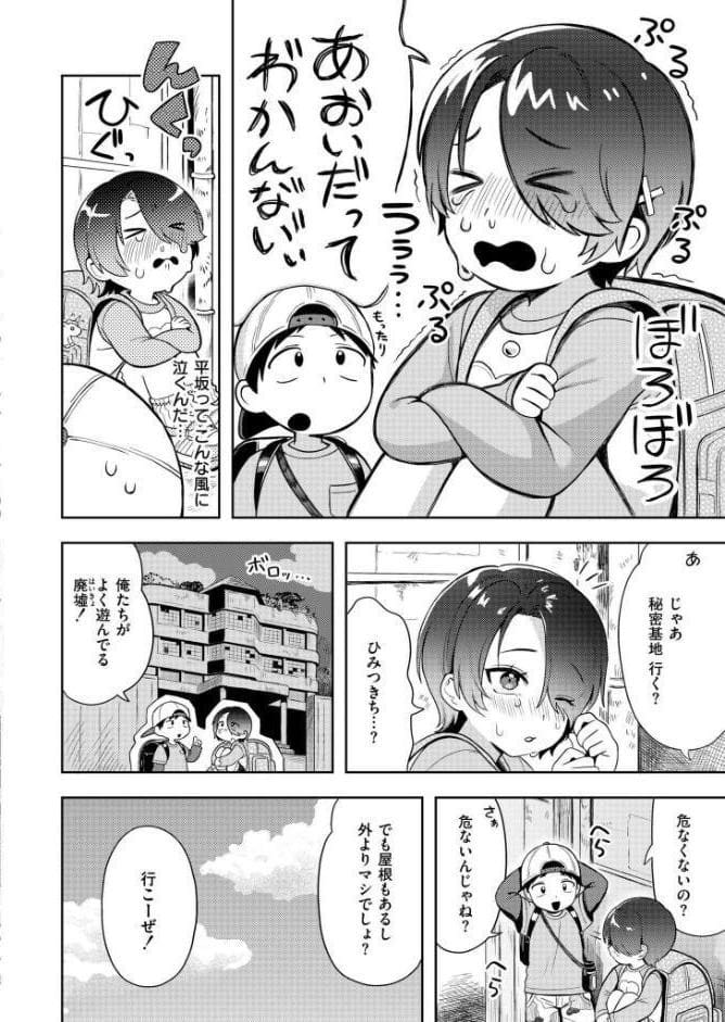 はじめての家出はエロ本といっしょに…下校途中、路地裏で出会ったクラスメイトのあおいちゃん。目に涙を浮かべてただごとではない様子!?ひとまず秘密基地へ連れて行き事情を尋ねる牧くん。どうやら隠し持っていたエロ本が母親にバレてしまって家出したようだ…慰めるために自分の持っているエロ本を読ませてあげて、二人っきりの読書会。次第におまたがうずうずしだして……