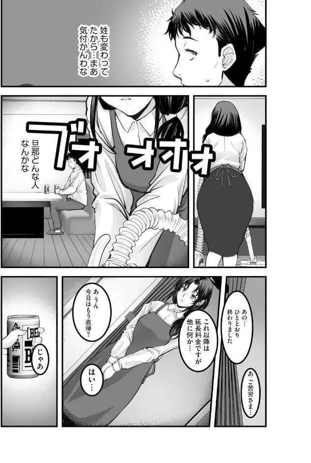 ミサは夫の光一と子どもと暮らす主婦。 倦怠期の夫との性生活に多少不満を感じつつも、日々を平穏に過ごしていた。 ある日、友人の佳織から1日だけアルバイトを代わってほしいと頼まれる。 佳織の押しの強さに負けたミサは、1日だけホームヘルパーを代わることに。 向かった先の家の主人は、結婚前の元彼、三沢敬だった。 最初は戸惑うふたりだったが、世間話や過去の思い出話をしている内に徐々に雰囲気が打ち解け、酒が入…