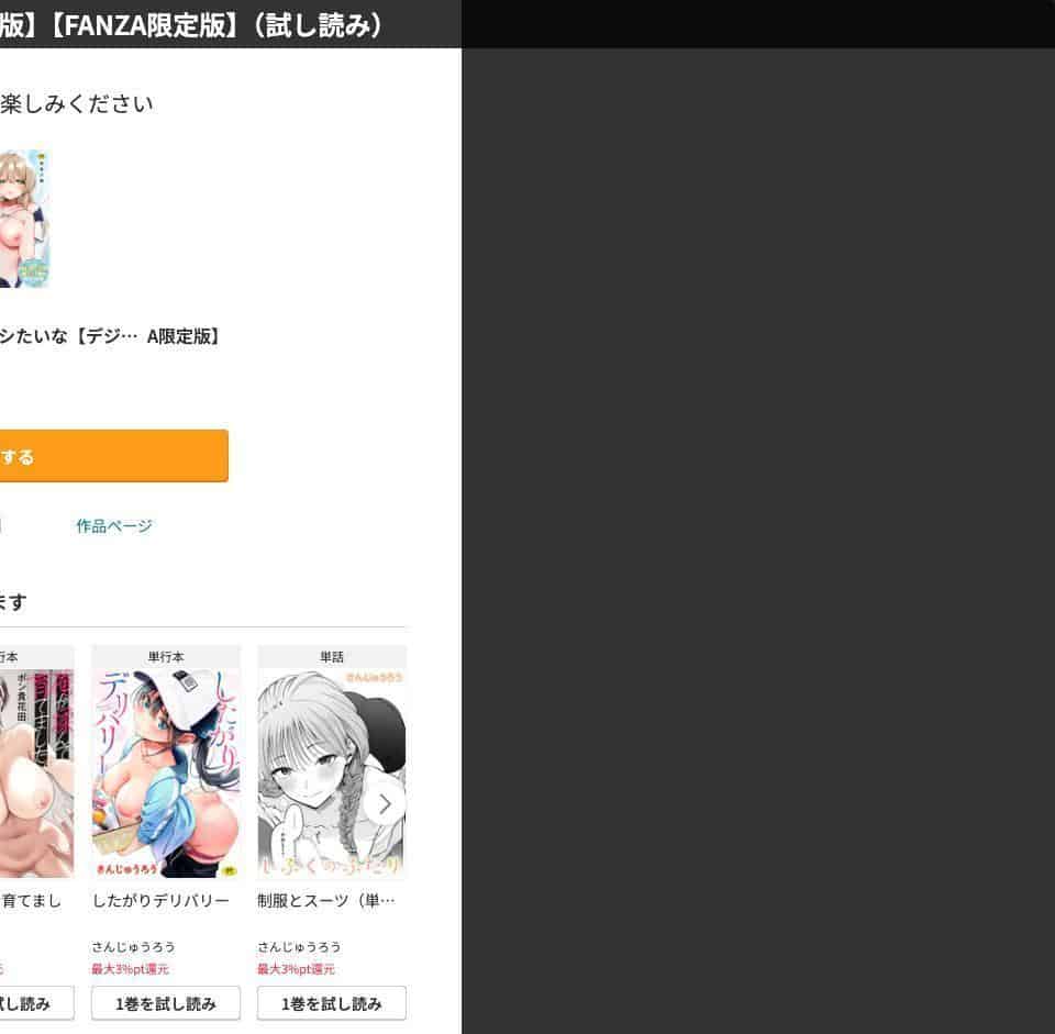 結論:FANZAで間違いなし。「昔はDLsiteの方がモザ薄」なんて声もあったけど、今はほぼ同じ画質。それなら大手でセール頻発&使いやすいFANZAが圧勝!今すぐ無料でエロ漫画を見る。