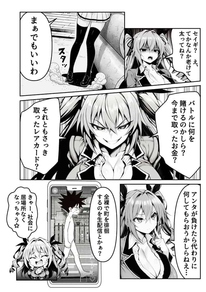 カードゲーム漫画のエロいメスバトラーを闇のゲームでメス奴●に洗脳支配!!バトルクリーチャーズ――それは謎のテクノロジーによって、カードを置くだけでカードの効果やモンスターの実体化する革命的なゲームである。爆発的に世界中でヒットしたこのカードゲームだが、なぜか強力なカードを実体化させることができるのは女性だけだった。ルール上、実体化しないカードは使うことができず、当然トッププレーヤーも女性ばかりとな…