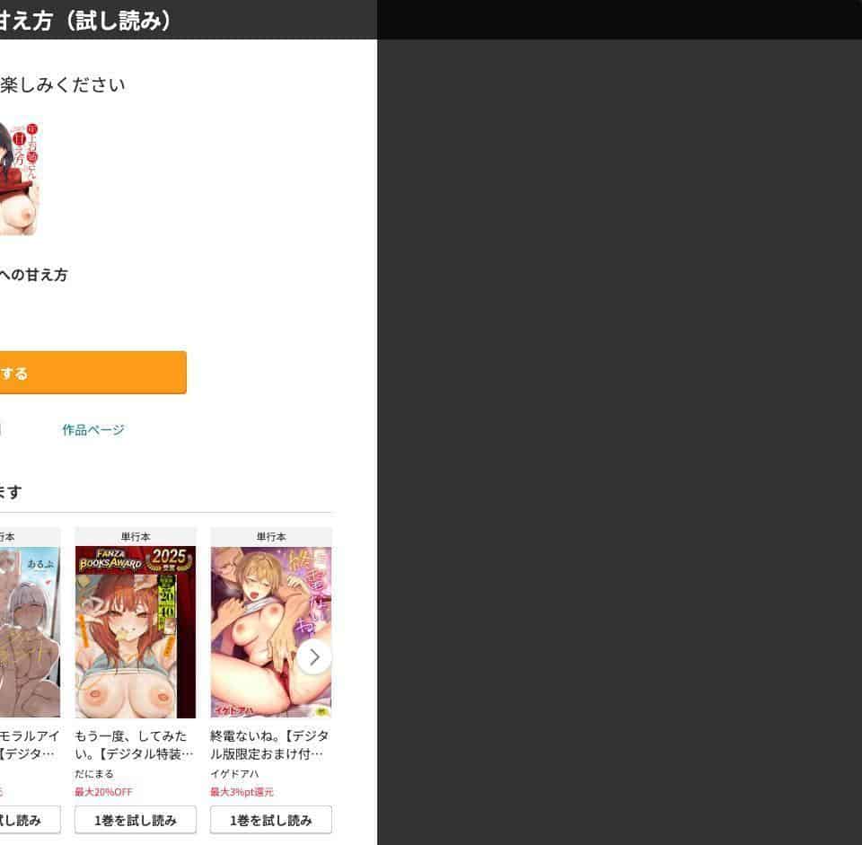 結論:FANZAで間違いなし。「昔はDLsiteの方がモザ薄」なんて声もあったけど、今はほぼ同じ画質。それなら大手でセール頻発&使いやすいFANZAが圧勝!今すぐ無料エロ漫画を読む。