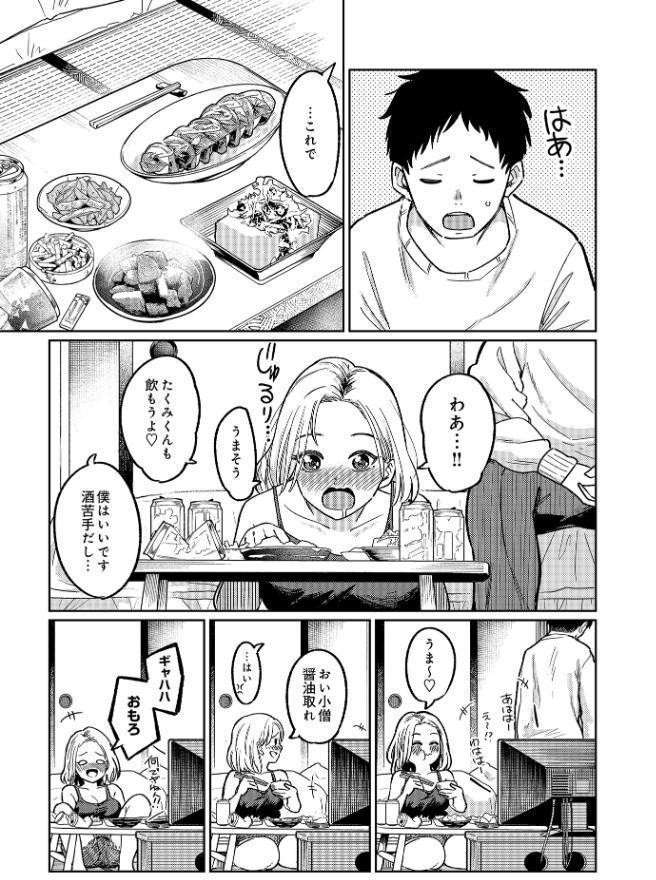 たくみには最近悩みがある。 家に上がり込んで酒を飲んでる隣人、舞香の存在だ。 勝手に家に上がり込みつまみを要求しながら寛ぐ舞香に マッサージをして欲しいといわれるたくみ。 無防備な舞香に魔が差しておっぱいを揉んでしまい…?